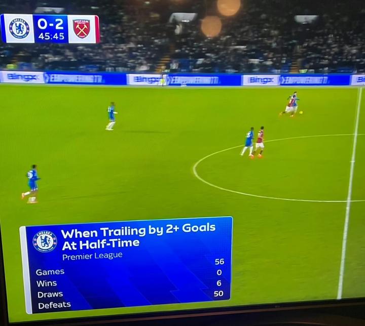 扫描下载懂球帝首页>动态> 懂球号> 此前切尔西56次半场落后2球或以上,6平50负。...