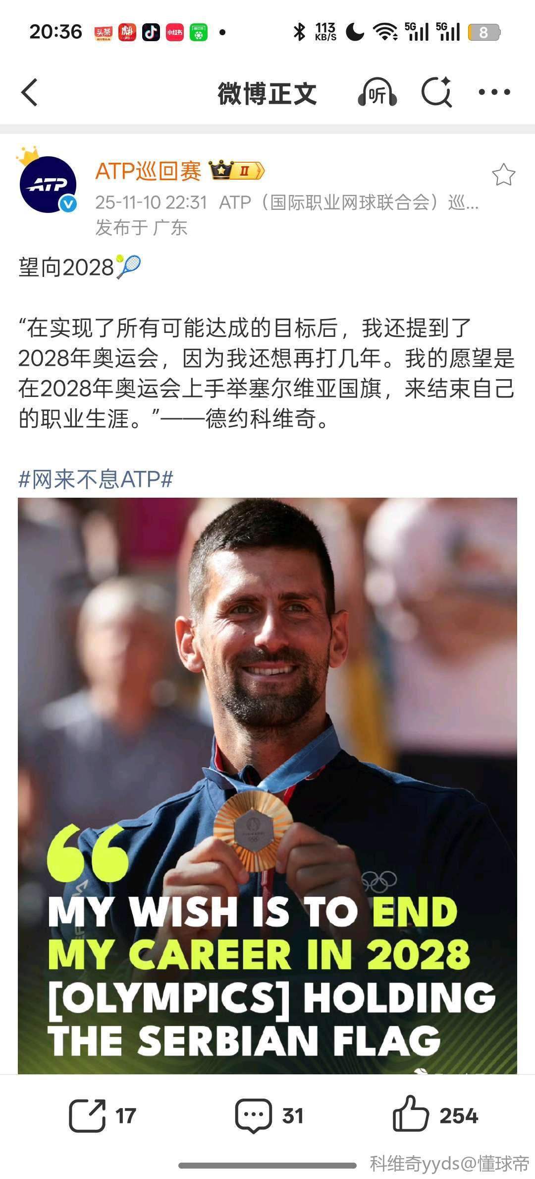 传出去 德约48岁退役
