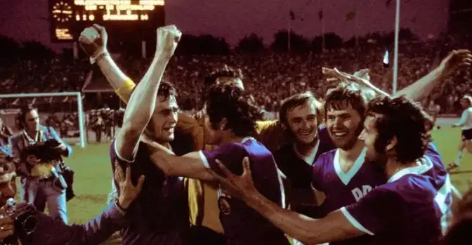 东德队曾经凭借着尤尔根·斯帕瓦瑟(Jurgen Sparwasser)的进球,1-0战胜西德。比赛所在地是西德的第一大港口汉堡的人民公园球场,也就是汉堡队的主场。