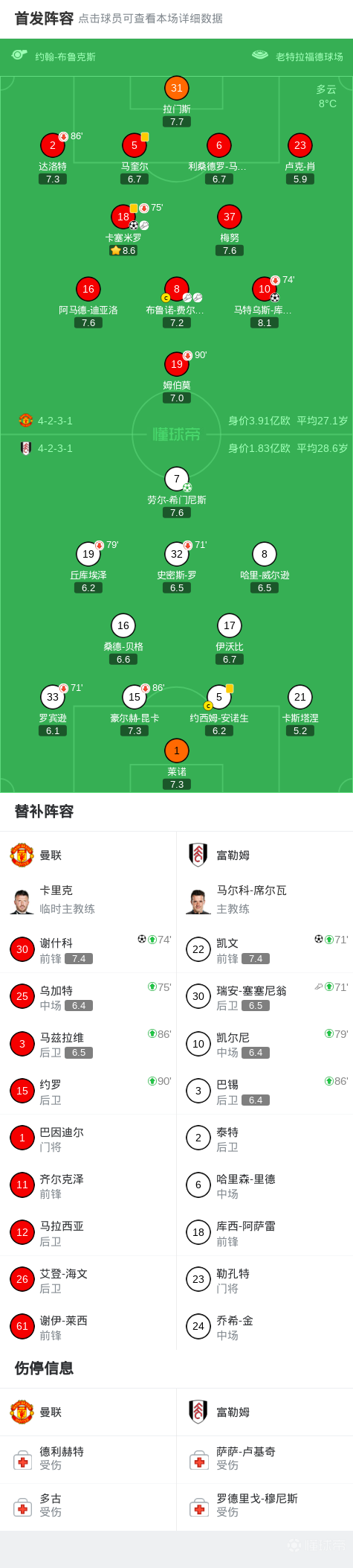 扫描下载懂球帝首页>动态> 剑南春丨曼联3-2富勒姆取三连胜,卡塞米罗传射,谢什科替补建功