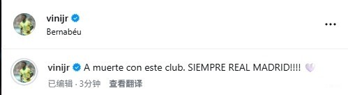 扫描下载懂球帝首页>动态> 结束西甲进球荒,维尼修斯社媒:至死忠于皇马,永远都是皇马