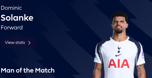 扫描下载懂球帝首页>动态> 梅开二度,索兰克当选热刺vs曼城全场最佳球员