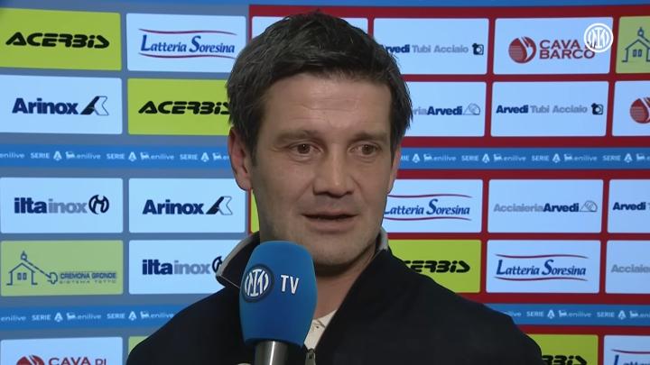 率队在意甲第23轮客场2-0击败克雷莫内塞之后,国际米兰主教练齐沃接受了来自俱乐部官方电视台的采访。