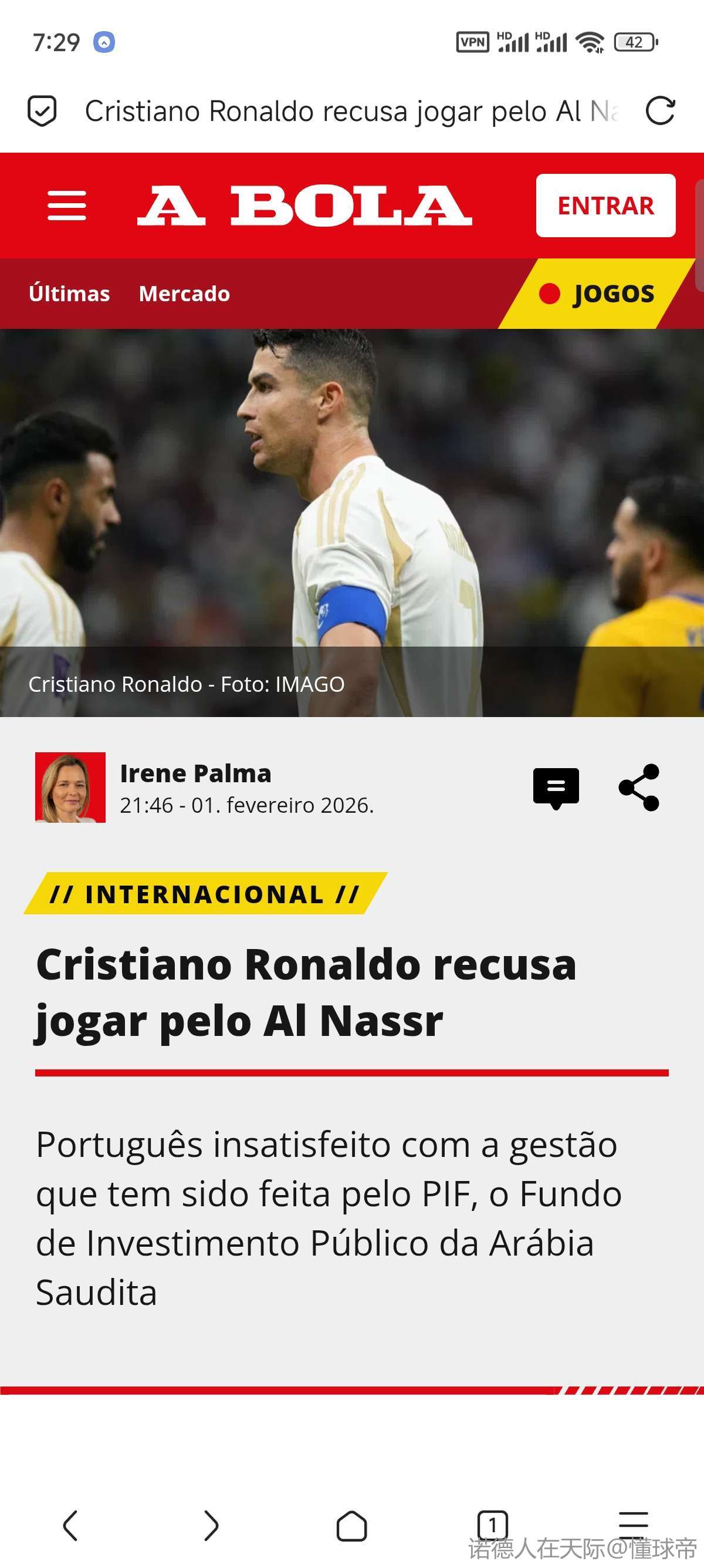 02-02 08:43沙特记者:虽然有各种传闻,但C罗会首发出战明日的比赛