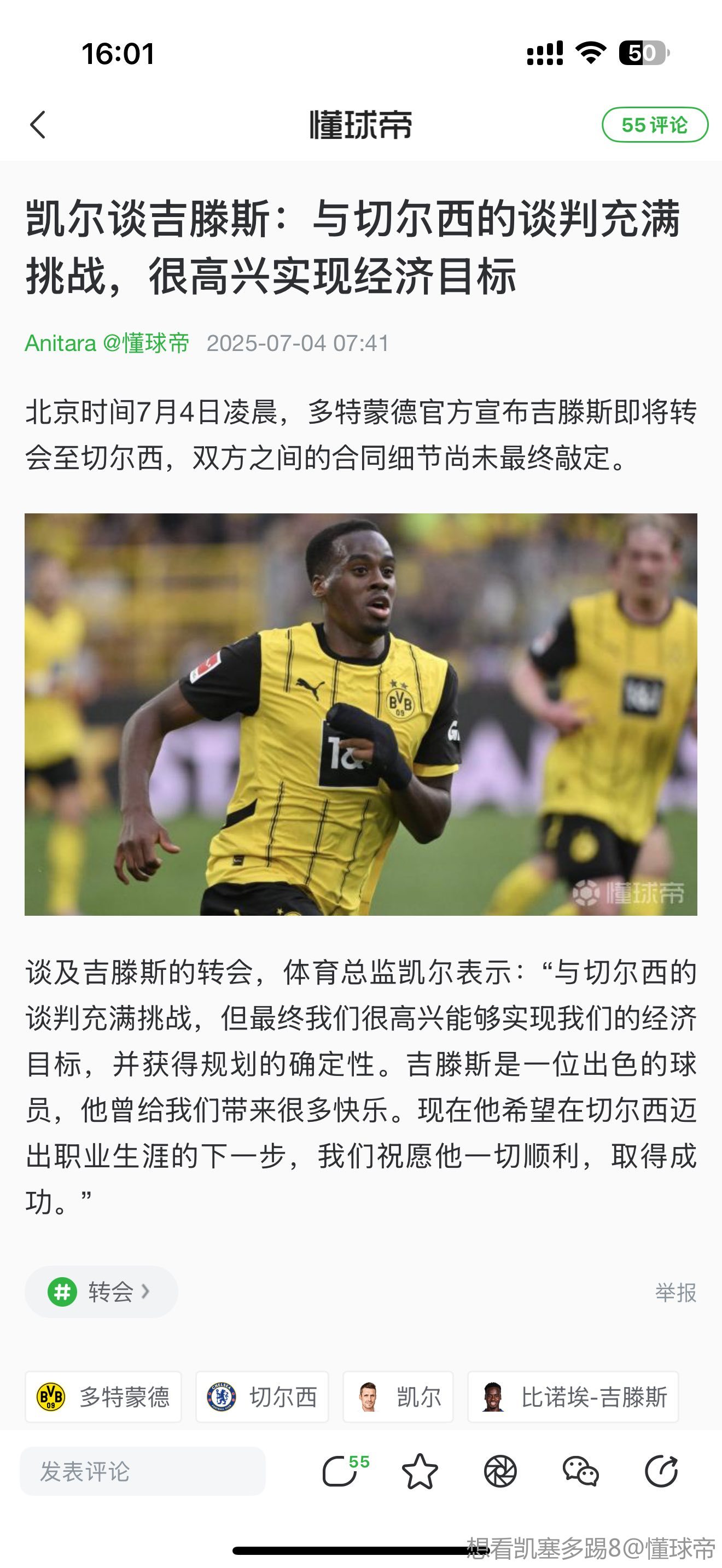 感觉像说出来给多特球迷听的,言外之意就是“切尔西背锅,别喷我不作为”