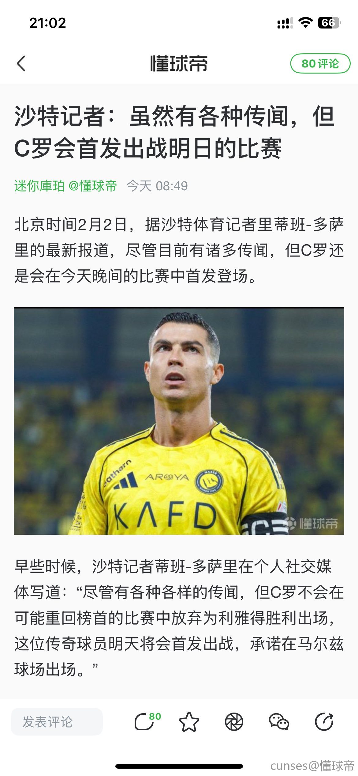 02-02 22:17沙特记者:虽然有各种传闻,但C罗会首发出战明日的比赛