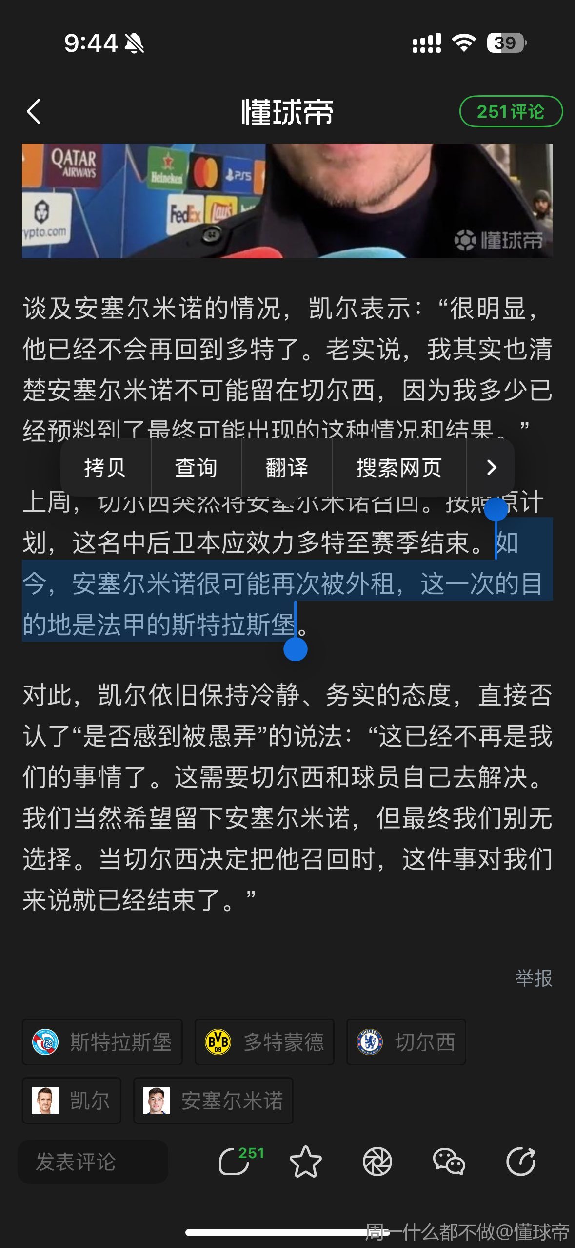 利亚姆,抱歉,关于转会窗截止日的问题可能问得有点早了,但我必须问你关于马马杜-萨尔的事,因为有报道说你正在亲自推动他的回归,我知道这件事还没发生,也可能不会发生,但是如果他真的回归了,这对于切尔西、斯特拉斯堡以及双方之间的关系意味着什么?