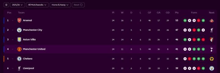 02-02 22:30✅ 锁定英超前五概率:阿森纳 ——100%曼城 ...