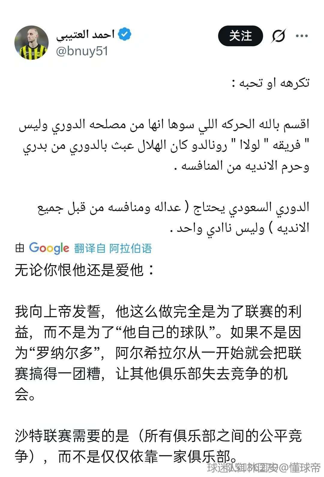 人总是看绩效的,你看了过去几年利雅得胜利和利雅得新月的成绩,换你你也把新月当亲儿子。人家是沙特王子不是王特沙子