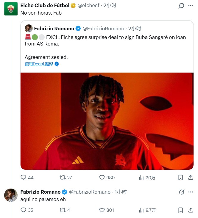 扫描下载懂球帝首页>动态> “剧透”转会惹埃尔切调侃,罗马诺回应调戏:我们永不休息