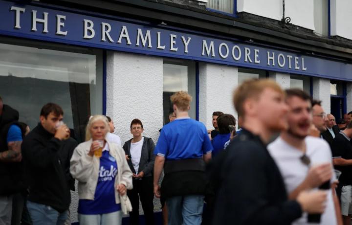 有些紧邻已关闭球场的酒吧,处境则更加艰难。温斯洛酒店始建于19世纪80年代,十年后,埃弗顿的古迪逊公园球场在其隔壁落成。这家自诩为“人民酒吧”的酒馆,数十年来一直是埃弗顿球迷比赛日的聚集地,却在上周末举办了结业派对。