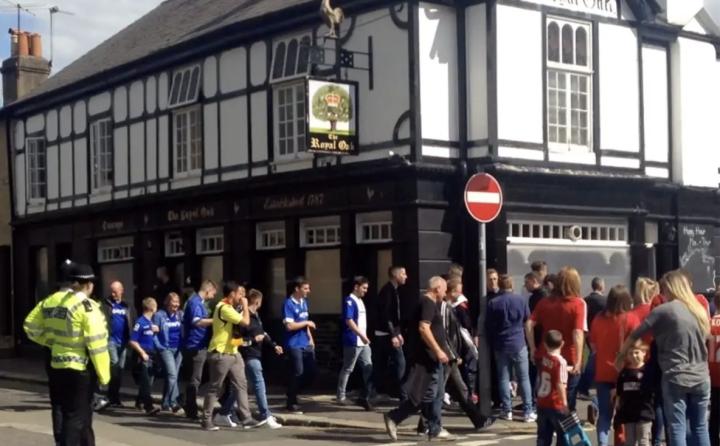 埃弗顿新球场对面的酒吧,将原本的绿色招牌漆成了皇家蓝,自埃弗顿迁至新球场后,这家酒吧迎来了新生。周一晚埃弗顿与利兹联战平的比赛前三个小时,酒吧内就已座无虚席,焕发出全新的生机。