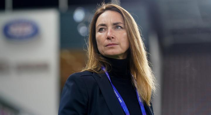 在上周末拜因体育独家转播的法甲联赛巴黎FC对阵马赛的比赛中,丹尼尔-布拉沃将矛头指向了前巴黎FC球员,现任俱乐部女足部门体育总监蒂尼(2025年5月退役)。看台上,她正在与左侧邻座——俱乐部新任总经理加洛的妻子瓦莱丽-加洛交谈。谈话内容显然无法得知。但从蒂尼的手势可以推测,她可能正在向对话者解释某个战术细节。