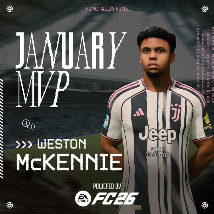 扫描下载懂球帝首页>动态> 7场贡献3球1助攻,麦肯尼当选尤文1月最佳球员