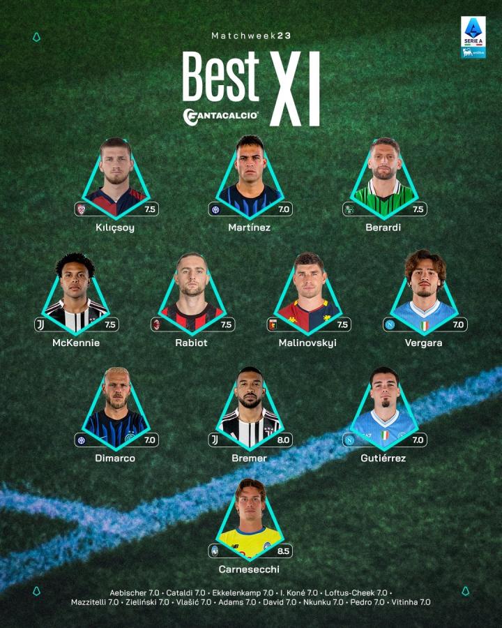 扫描下载懂球帝首页>动态> 意甲第23轮最佳阵容:劳塔罗、迪马尔科、麦肯尼、拉比奥在列