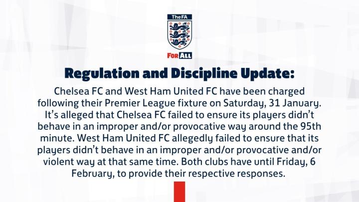扫描下载懂球帝首页>动态> 官方:切尔西和西汉姆联因上周比赛时的暴力冲突被英足总指控