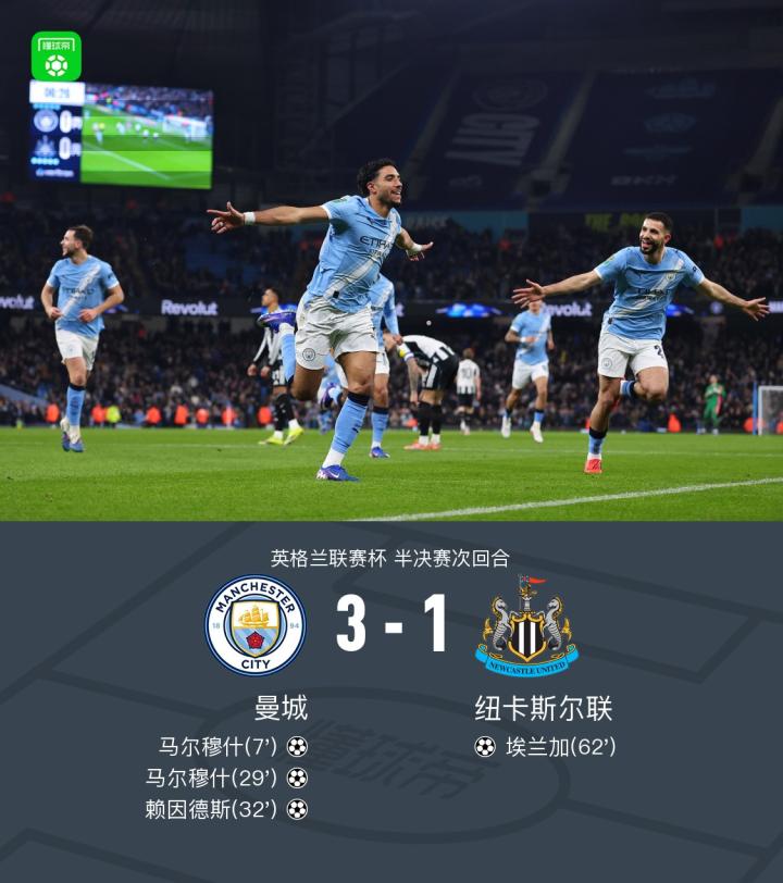 扫描下载懂球帝首页>动态> 剑南春|曼城总比分5-1纽卡晋级英联杯决赛,马尔穆什双响