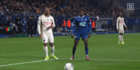 第25分钟,迪奥普抢球时踩到海达拉腿部,裁判出示黄牌对其警告
