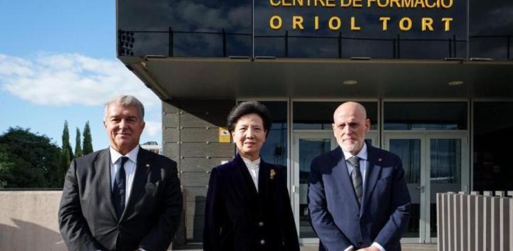 巴萨主席胡安-拉波尔塔接待了到访嘉宾,中国方面的代表包括中国国务委员、中国足球事务负责人之一谌贻琴,中国足协主席宋凯,中国足球协会职业联赛理事会执行局局长,中国U23国家队主教练安东尼奥-普切,以及中国驻西班牙大使姚敬,此次代表团共计约30人,代表着中国足球官方与专业层面的最高规格。