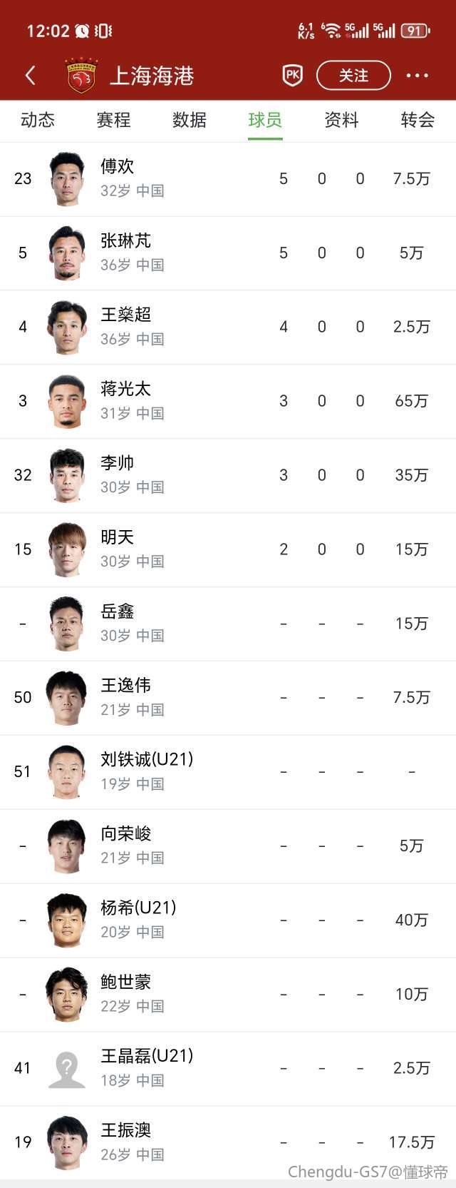 扫描下载懂球帝首页>动态> 德转:青岛西海岸20岁后卫杨希加盟上海海港