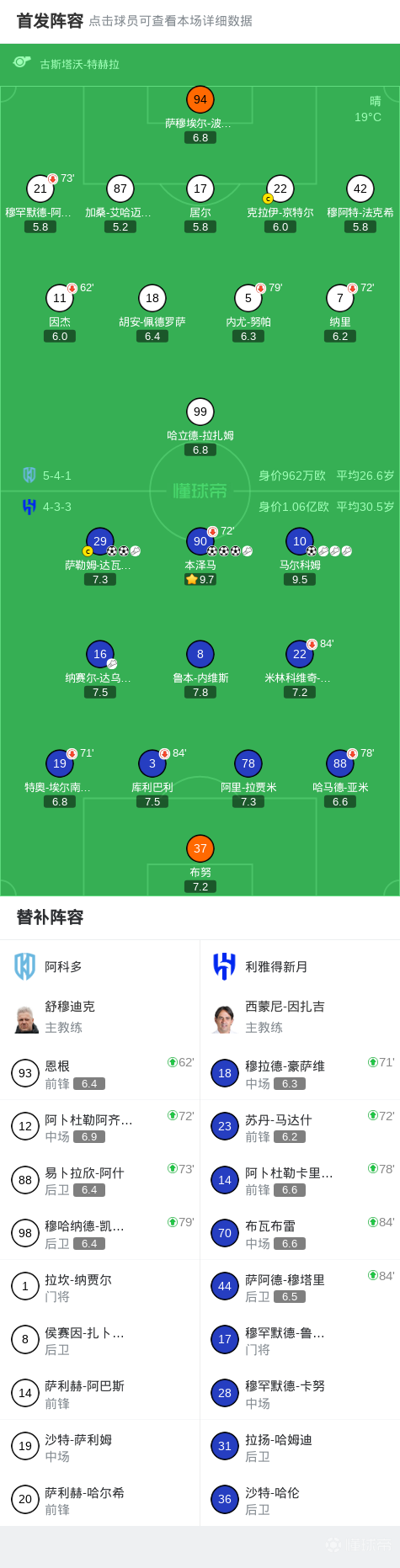 02-06 02:20半场战报:阿科多0-1利雅得新月,本泽马建功