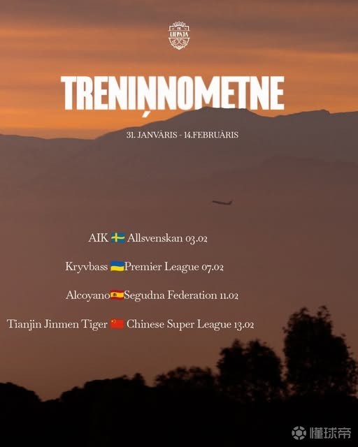 北京时间2月5日消息,据拉脱维亚超级联赛球队利耶帕亚官方消息,该队将与天津津门虎进行友谊赛。