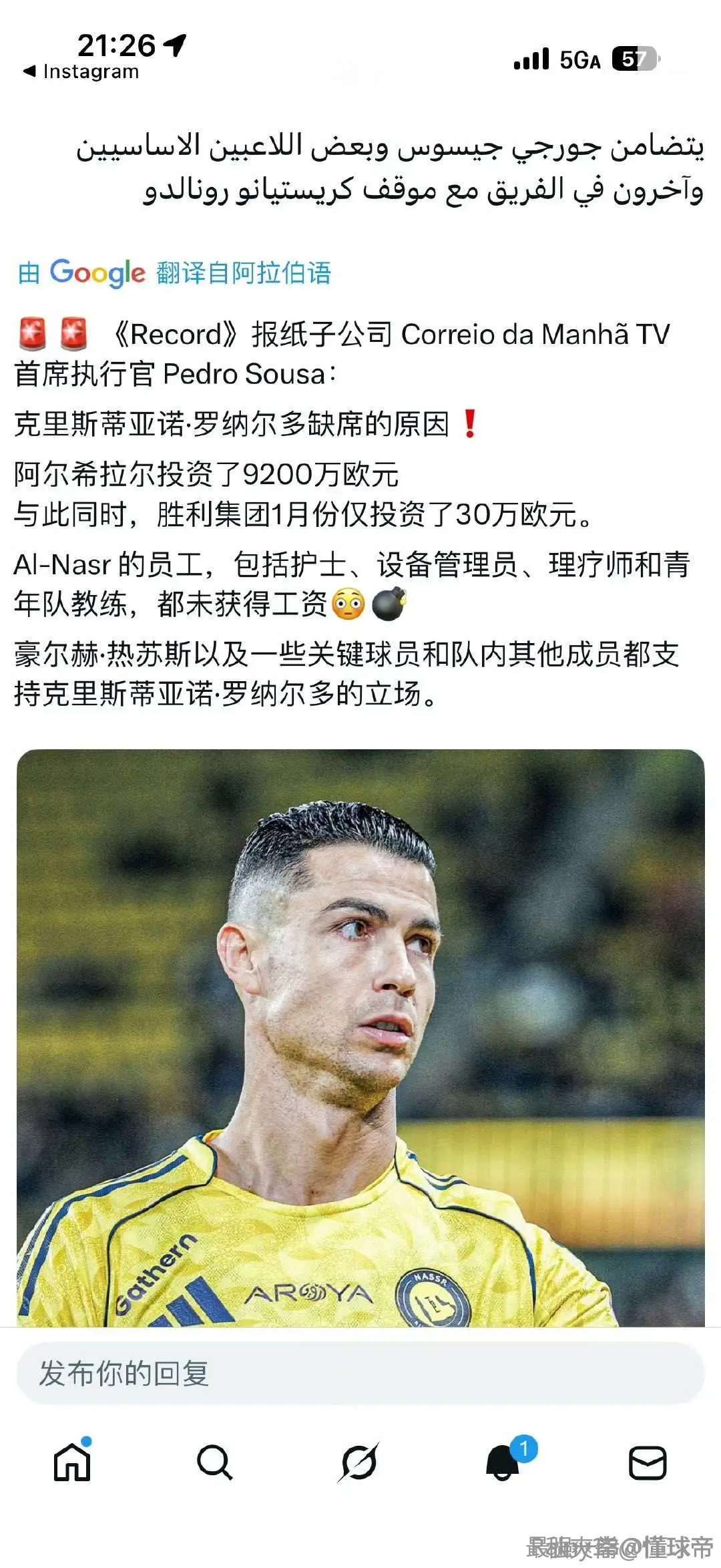 02-07 02:01球报:C罗继续罢赛,因为俱乐部仍未支付欠薪