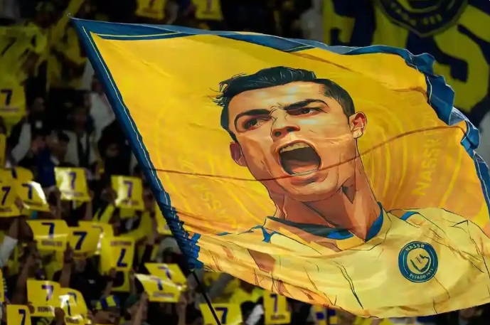 利雅得胜利球迷选择支持自己的球星,在对阵吉达联合的看台上高举C罗的7号标志以示声援。