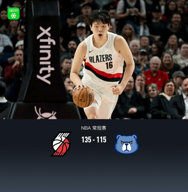 扫描下载懂球帝首页>动态> 开拓者135-115灰熊结束6连败,杨瀚森2分1板2失误,克林根13+17