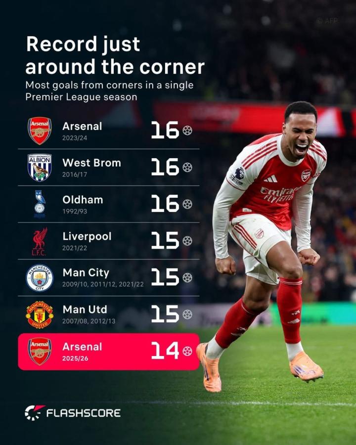 扫描下载懂球帝首页>动态> 枪手本赛季英超角球进球14个,仅差2球即可追平联赛历史纪录