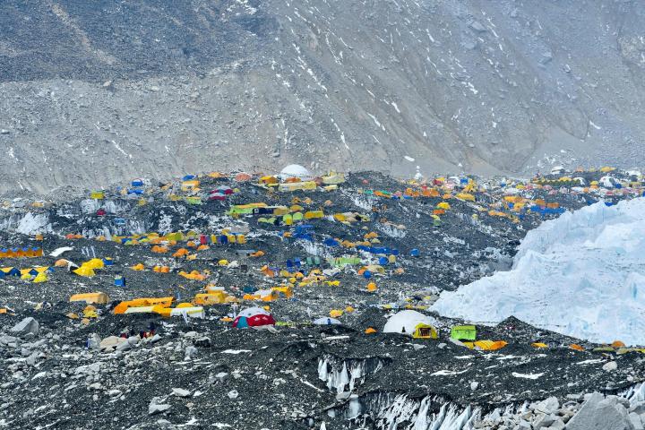 1970年4月5日,6人在海拔5700米处葬身昆布;2014年6月18日,昆布冰川发生雪崩,1万4千吨冰雪砸向架桥铺路的夏尔巴协作,16人遇难,成为登山史上最惨痛的事故;2023年4月12日,昆布冰川冰塔崩塌,3名夏尔巴殒命……南坡昆布冰川的雪崩冰崩成为了攀登者和高山协作最大的噩梦。