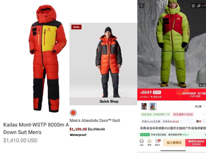 在海拔8000米以上的生命禁区能让你活命的除了高山向导,还有就是可靠的装备。全球顶级的8000米级羽绒服可以选择凯乐石、拓路者或大螺母(Mountain Hardwear)价格在8k多到1w多不等,除此之外冲锋衣、速干衣、背包、登山靴、冰爪、冰镐、安全绳、上升器……所有装备加在一起还要数万元,外加往返机票,这趟逐梦之旅可能要花光普通牛马多年的积蓄,高昂的费用就让大部分人望而却步。