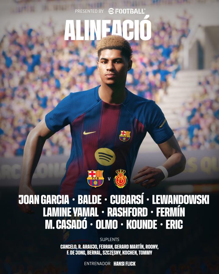 扫描下载懂球帝首页>动态> 巴萨vs马略卡:亚马尔、莱万、拉什福德首发,奥尔莫出战
