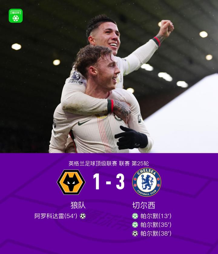 02-08 01:32半场戴帽,帕尔默当选切尔西客胜狼队全场最佳球员