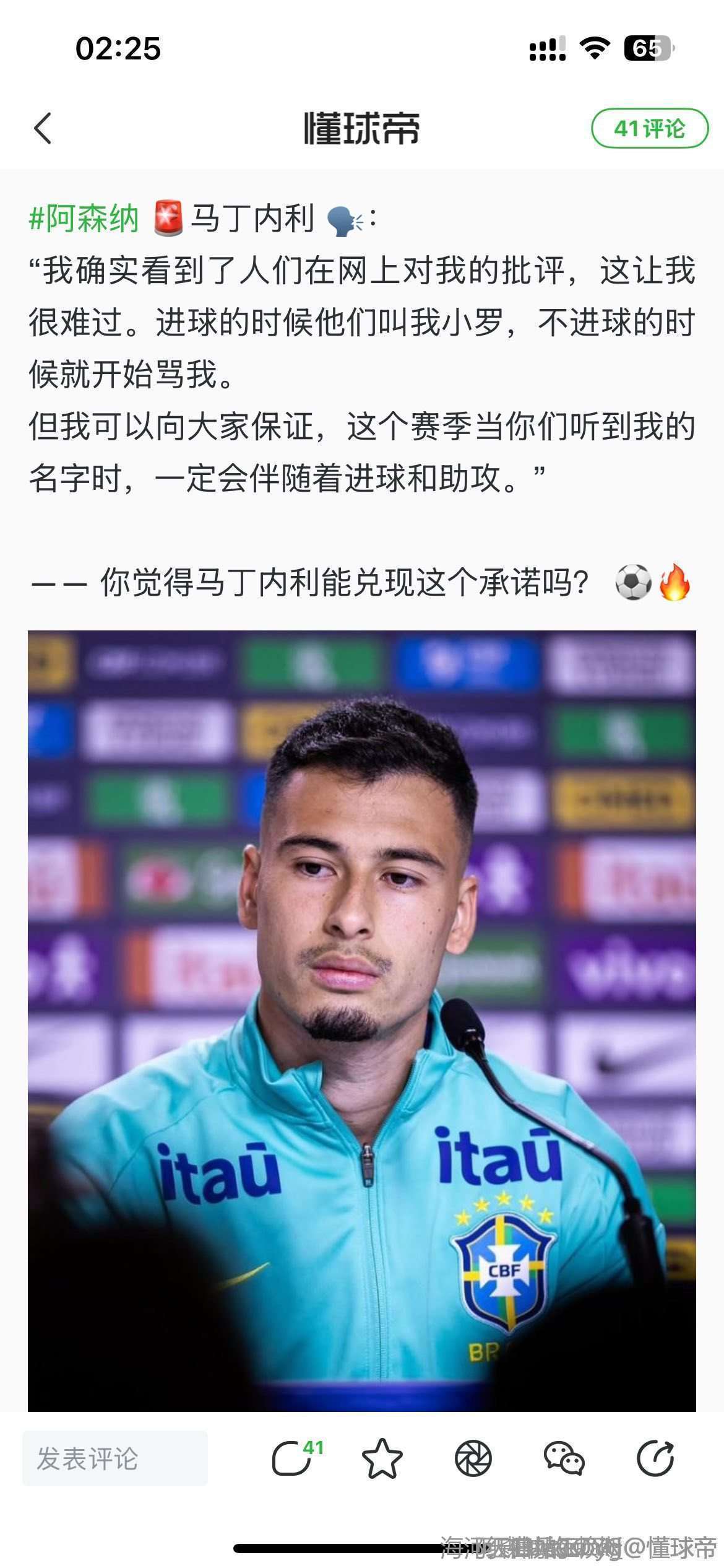扫描下载懂球帝首页>动态> 马丁内利:我想进球也想助攻,我想帮助阿森纳赢得冠军