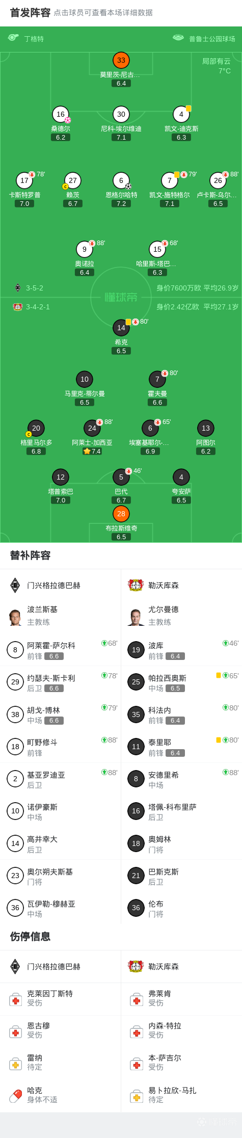 门兴格拉德巴赫 vs 勒沃库森 比赛动态