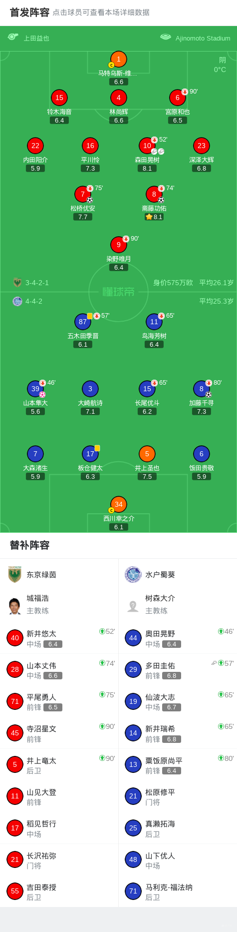 北京时间2月8日日本职业联赛J1东区第1轮,东京绿茵主场对阵水户蜀葵。东京绿茵斋藤功佑、松桥优安分别破门。水户蜀葵加藤千寻破门,山本隼大不幸乌龙。最终比分东京绿茵3-1水户蜀葵。