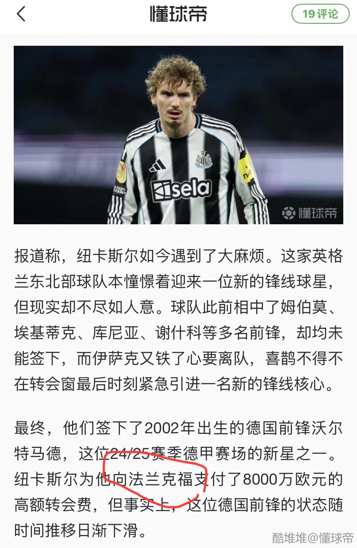 不懂就问,为什么纽卡要付钱给法兰克福?