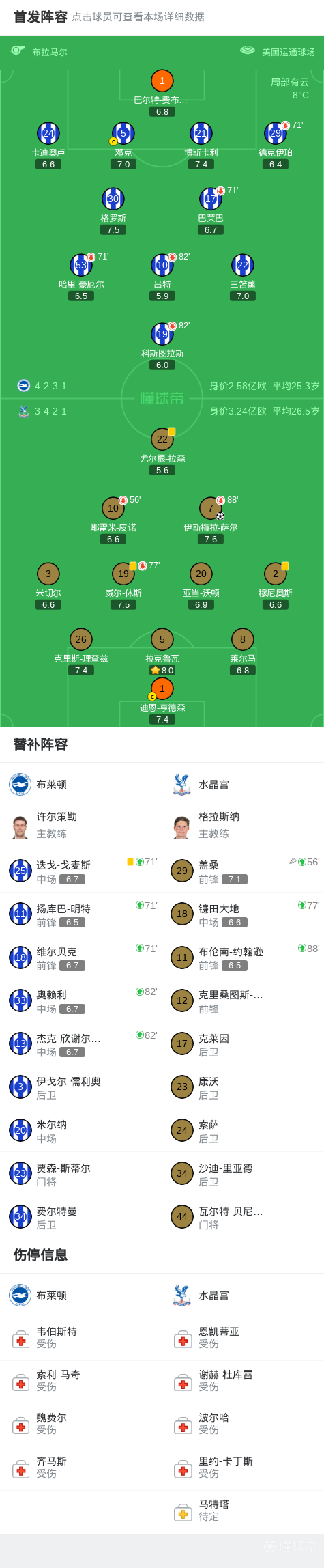 白天就感觉这场要终结不胜 看到布莱顿大名单有两个小孩更是信心大增 不得不说冬季转会能给打90分 现在前场太有活力了 这拉森全场狂奔 抽筋了之后居然还在疯狂跑位差点进球 盖桑也不错 给水晶宫增加了冲击力 皮诺太软了 慢吞吞像老太太过马路 布伦南约翰逊做梦也没想到在热刺打替补来水晶宫还要替补