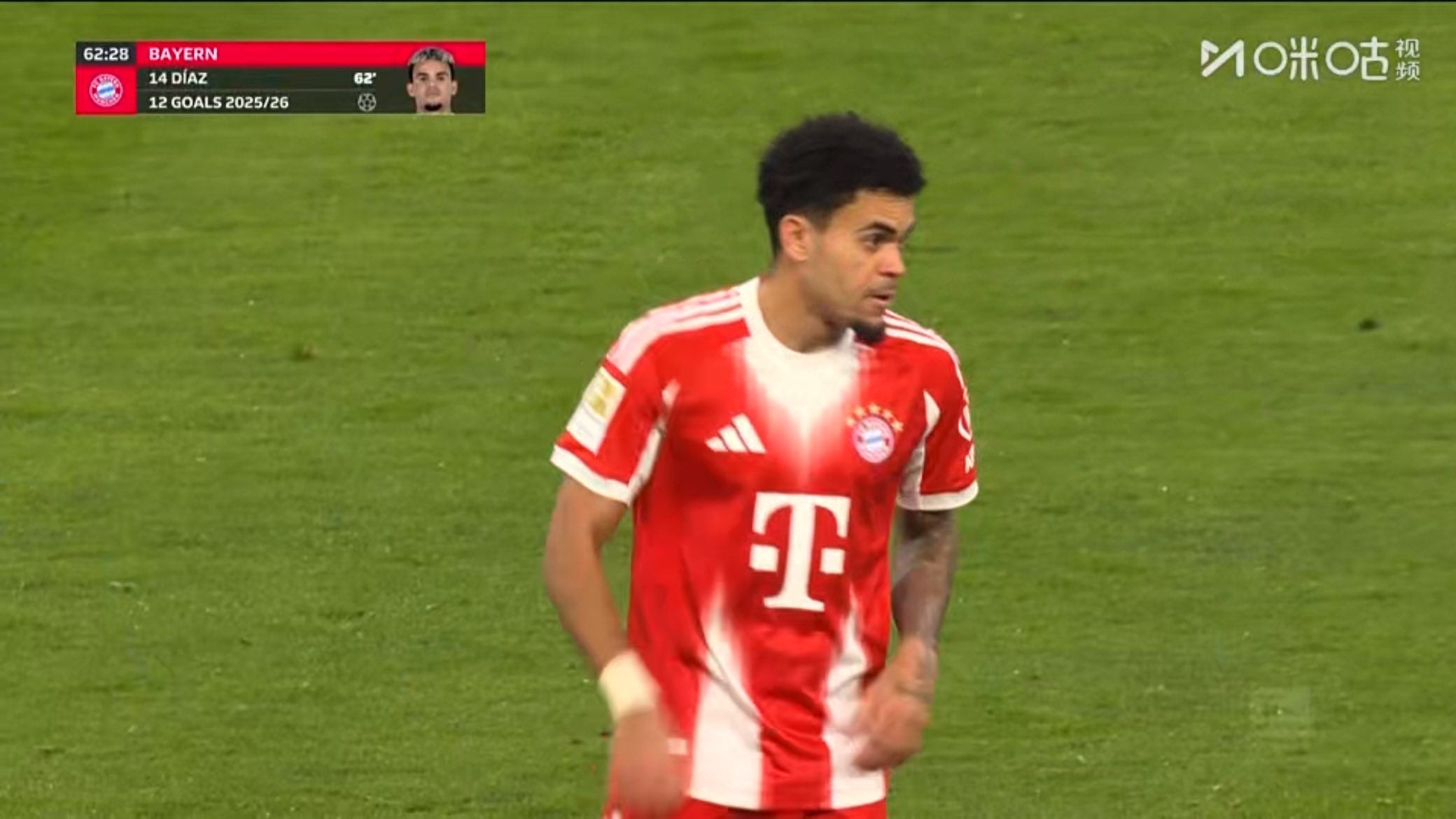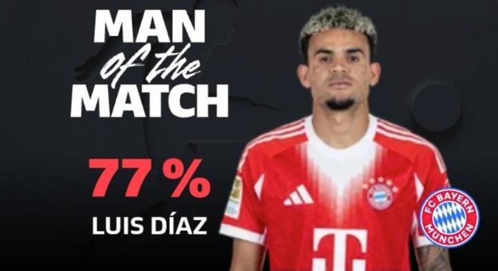 扫描下载懂球帝首页>动态> 戴帽助拜仁5-1大胜霍芬海姆,路易斯-迪亚斯当选全场最佳球员