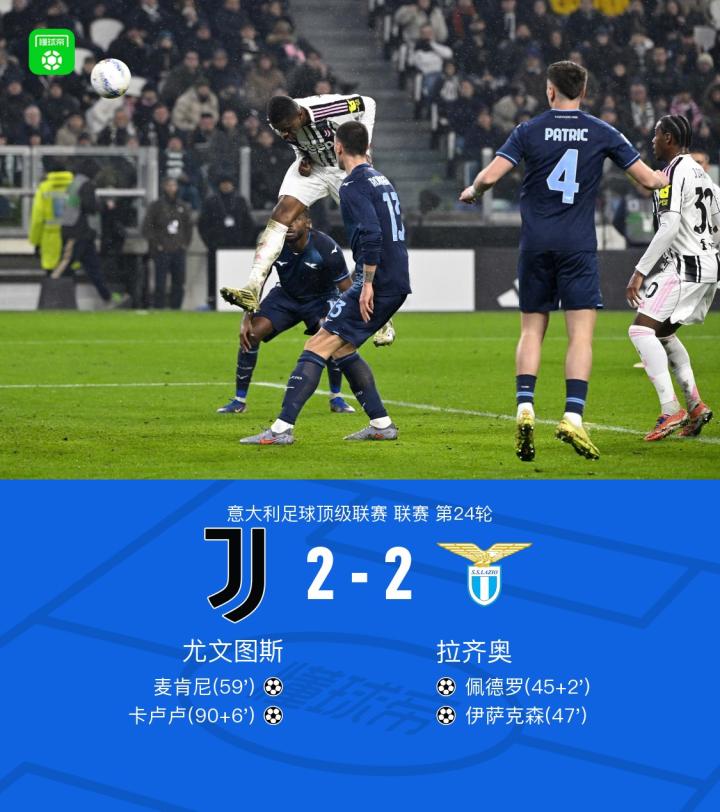 扫描下载懂球帝首页>动态> 剑南春丨尤文连追两球2-2拉齐奥,麦肯尼破门,卡卢卢绝平