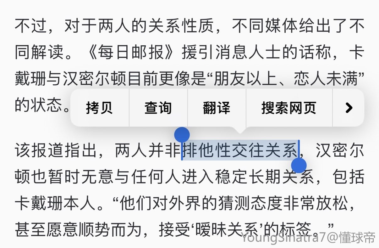 该报道指出,两人并非排他性交往关系,汉密尔顿也暂时无意与任何人进入稳定长期关系,包括卡戴珊本人。“他们对外界的猜测态度非常放松,甚至愿意顺势而为,接受‘暧昧关系’的标签。”