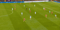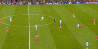 而在第12分钟,曼城在高球争夺中也占尽优势,从而让球队险些打成针对利物浦身后的进攻: