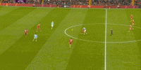 这在战术上不会有特别明显的变化,所以曼城的表现并未立刻改善,于是在第73分钟,利物浦在由左至右的转移过程中打出进攻,随后在二点争夺中制造了定位球: