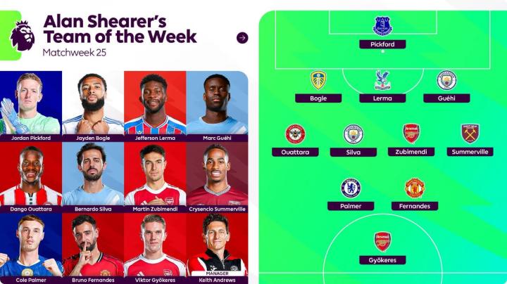 扫描下载懂球帝首页>动态> 希勒评英超第25轮最佳阵:B席、格伊、B费、帕尔默、哲凯在列