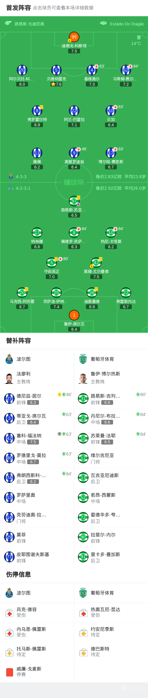 北京时间2月10日葡萄牙足球超级联赛 联赛 第21轮,波尔图主场对阵葡萄牙体育。波尔图塞科-福法纳破门。葡萄牙体育路易斯-苏亚雷斯破门。最终比分波尔图 1-1 葡萄牙体育。