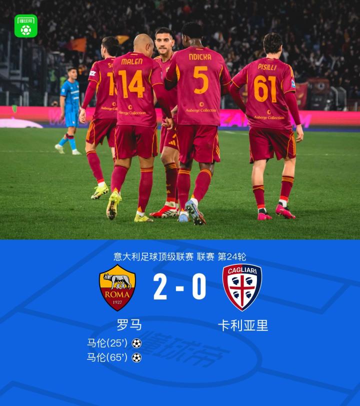 02-10 09:13比赛集锦:罗马2-0卡利亚里