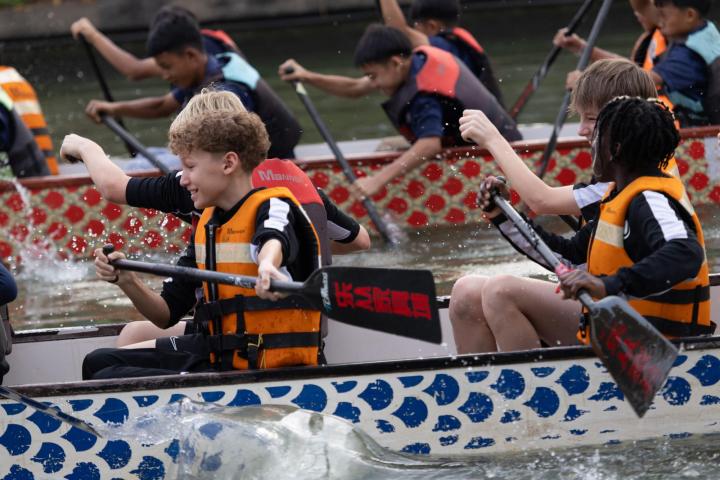 · 赛后进行龙舟体验,并与同在中国参赛的泰国U13梯队来了一场“龙舟友谊赛”。同频发力、统一节奏,让孩子们用另一种方式理解团队协作。