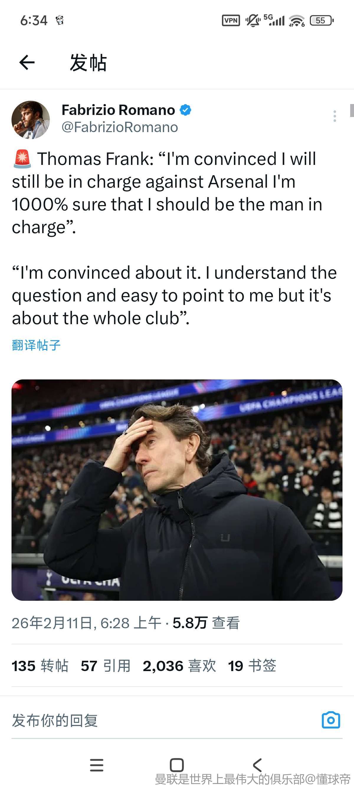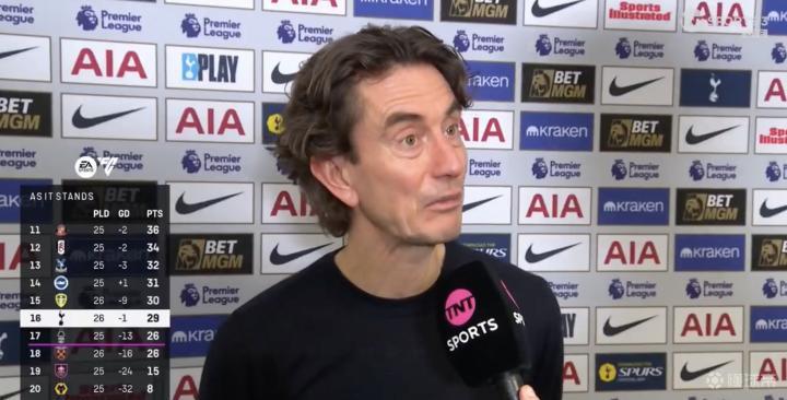 英超第26轮,热刺主场1-2不敌纽卡,赛后,热刺主帅托马斯-弗兰克接受了TNT体育的采访。