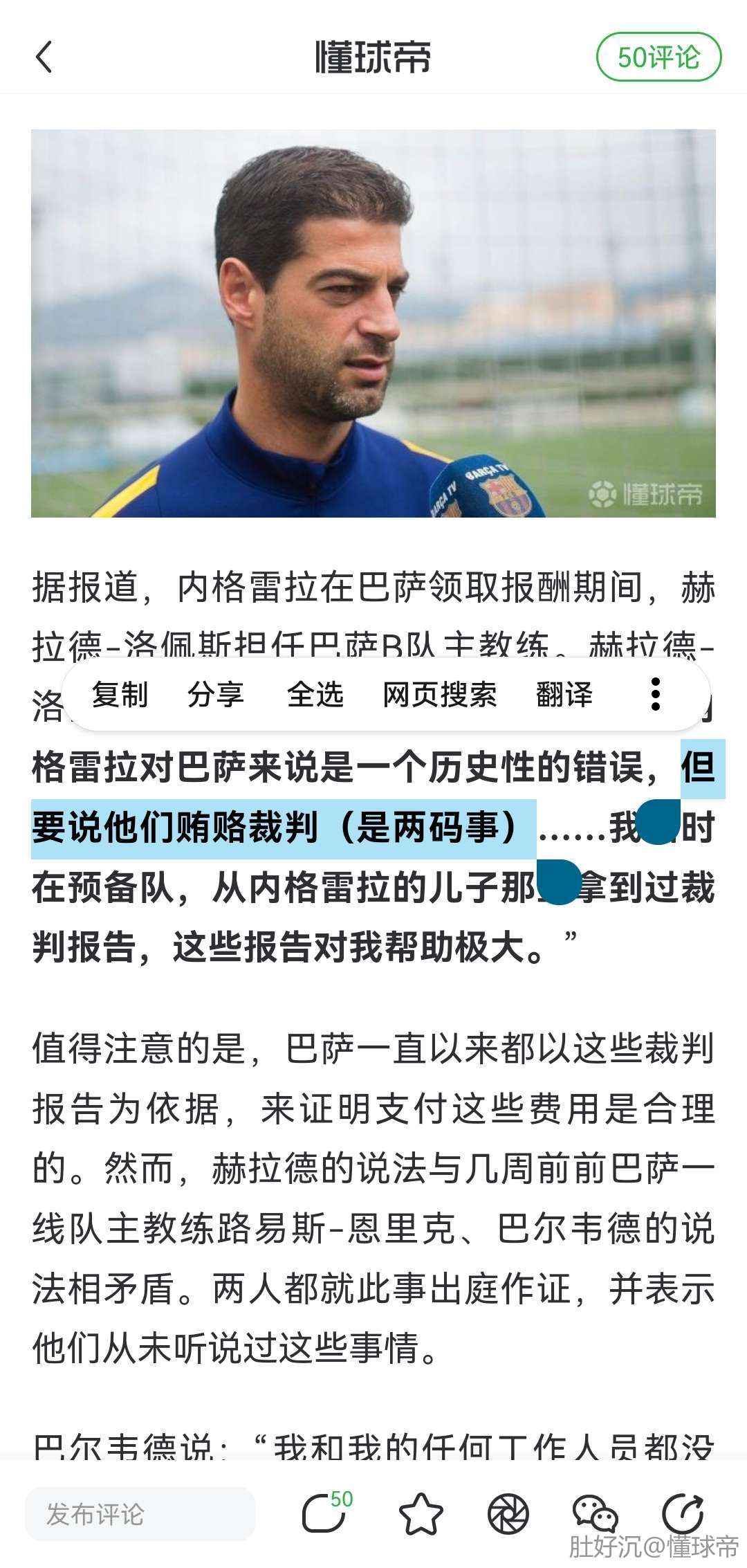 扫描下载懂球帝首页>动态> 前巴萨B队主帅:我确实曾经从内格雷拉的儿子那里拿过裁判报告